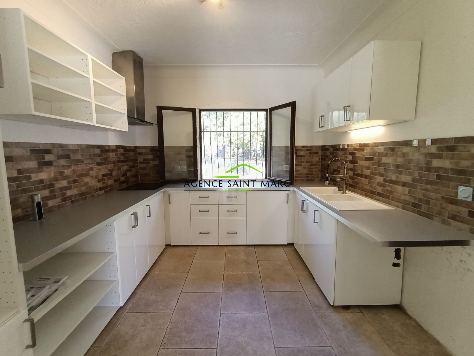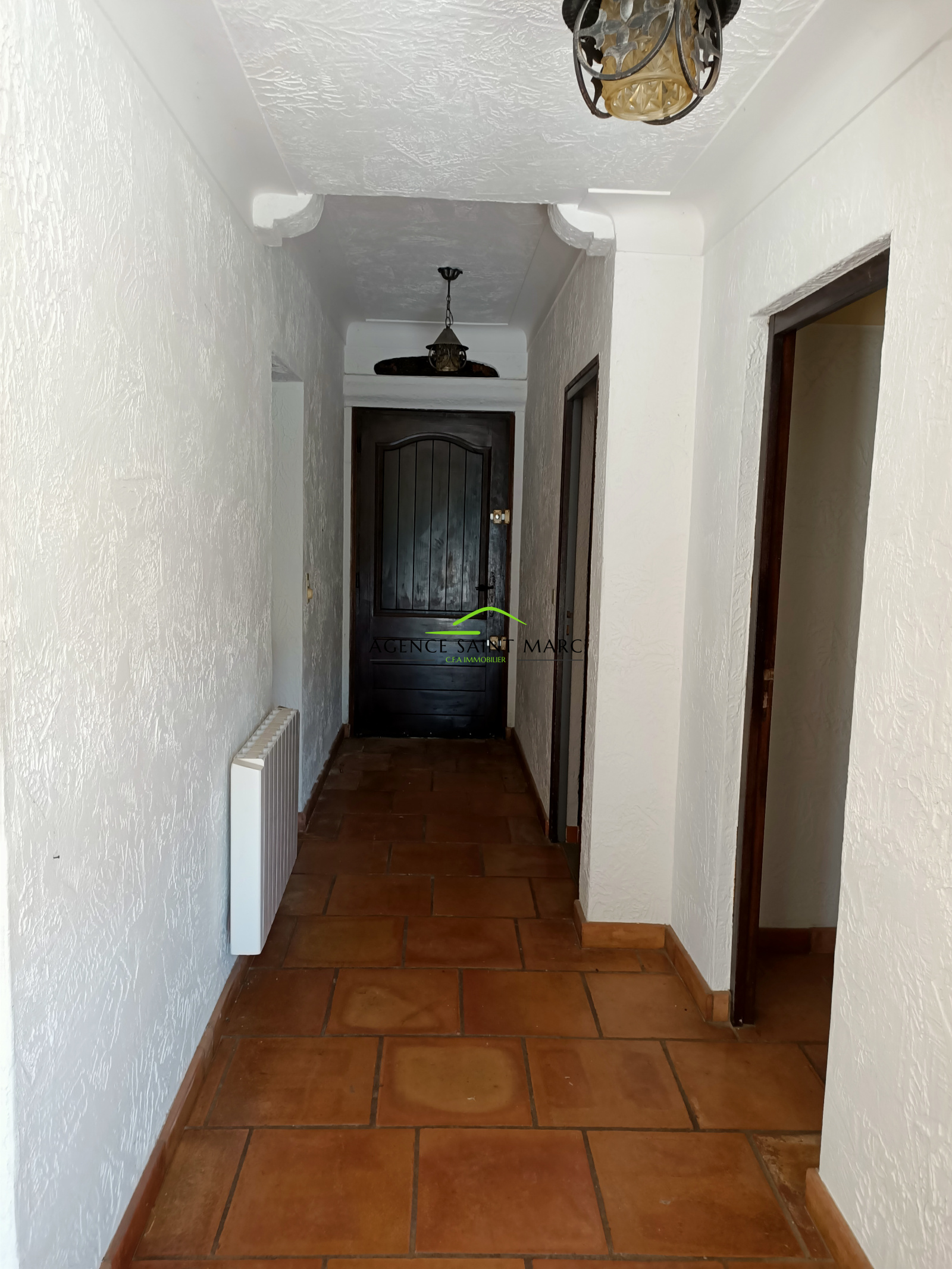 La maison offre une entrée, un grand séjour/salle à manger lumineux ouvrant sur l'espace piscine, une cuisine séparée, quatre chambres, une salle d'eau, une salle de bains.