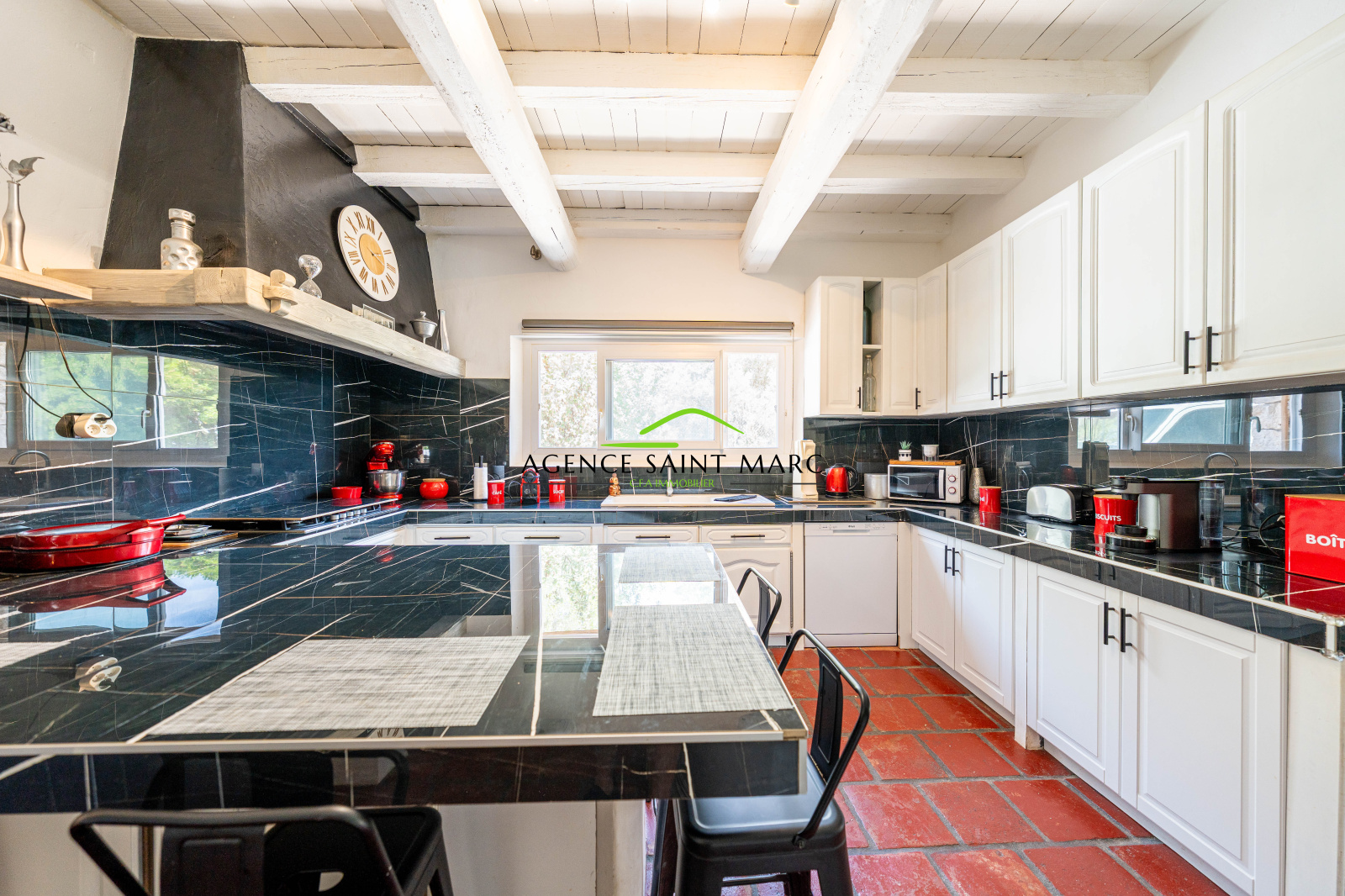Le Tignet, nichée dans un écrin de verdure, dans un quartier résidentiel au calme absolu, belle maison en pierre de 208 m2 érigée sur un terrain de 1700 m2 avec vue dégagée sur le lac de Saint Cassien, la mer et les collines environnantes.