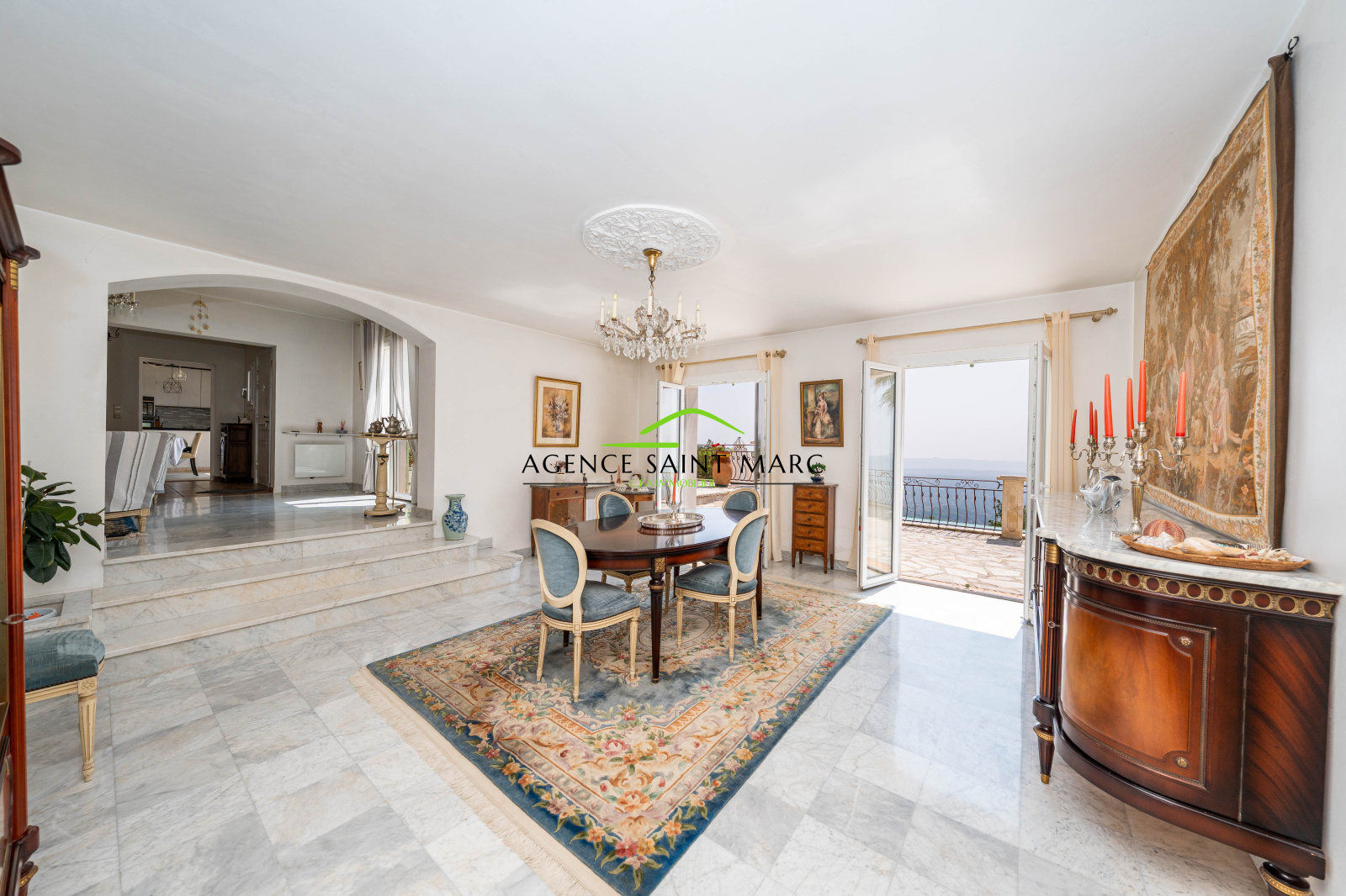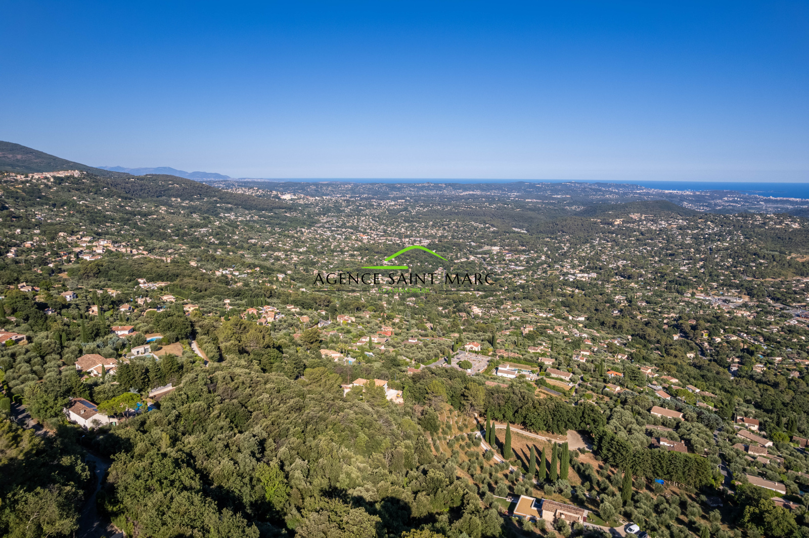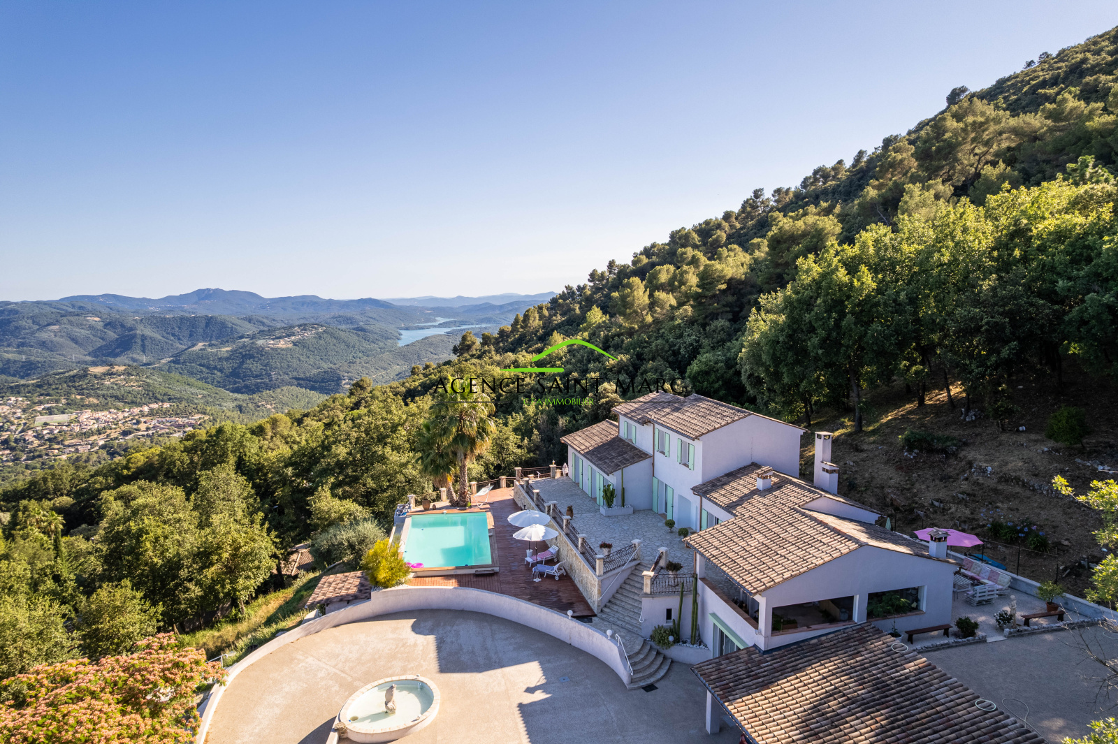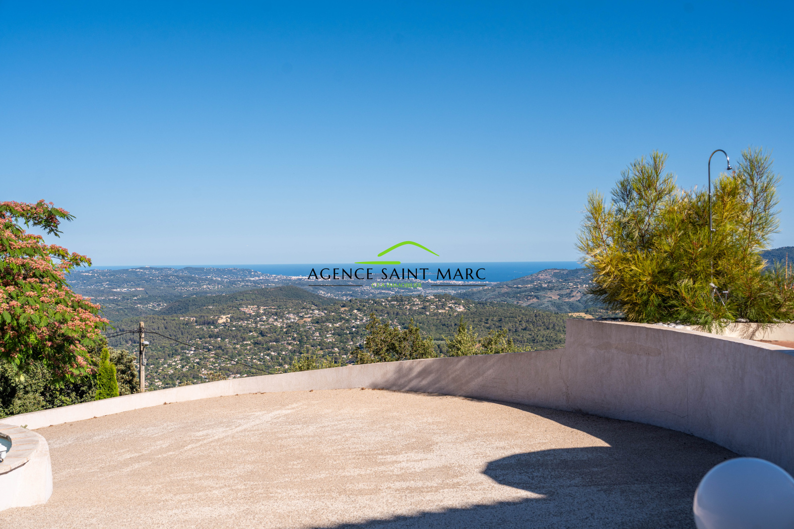 Le Tignet, belle maison d'environ 235 m2 en position dominante avec une vue époustouflante sur la mer, le lac et les montagnes environnantes, édifiée sur un terrain d'environ 3200 m2.