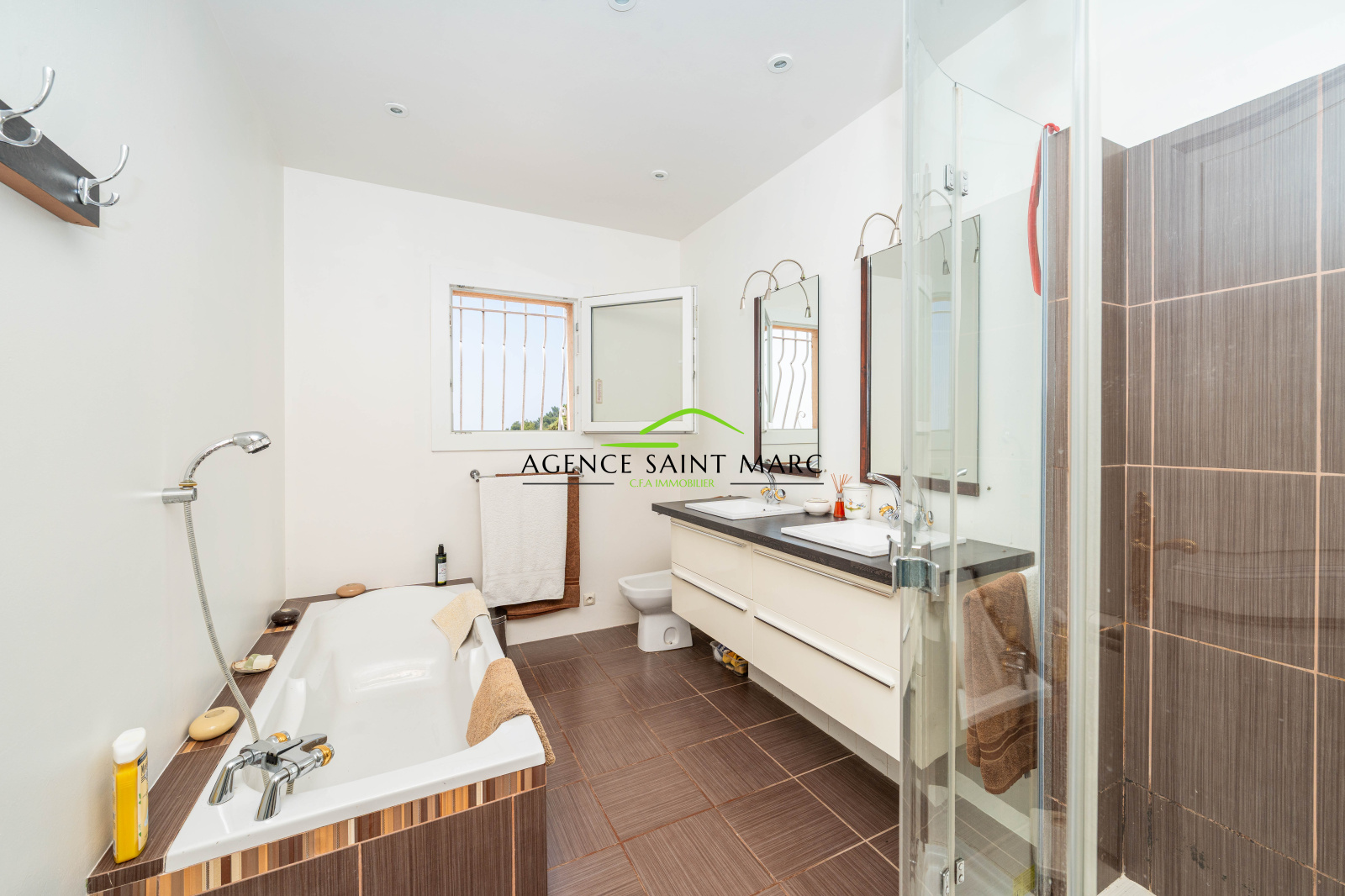 A l'étage, trois chambres dont une avec sa salle de douche, et une salle de bains.